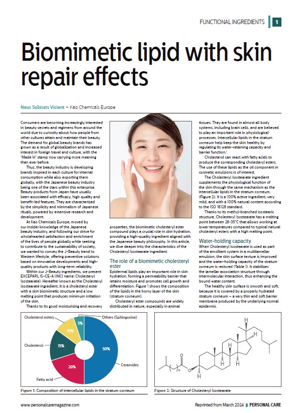 Read our latest article published at PERSONAL CARE magazine and discover how we bring the J-Beauty trend closer to Western lifestyle with a biomimetic skin lipid developed by Kao Corporation for Skin Care, EXCEPARL IS-CE-A