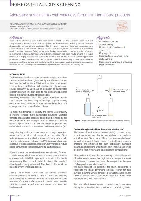 Read deeply our latest article published in HPC Today Magazine issue 5-2022 to find out more about sustainable ways to bring more respectful products to meet both, society demands in Home Care and green transition.